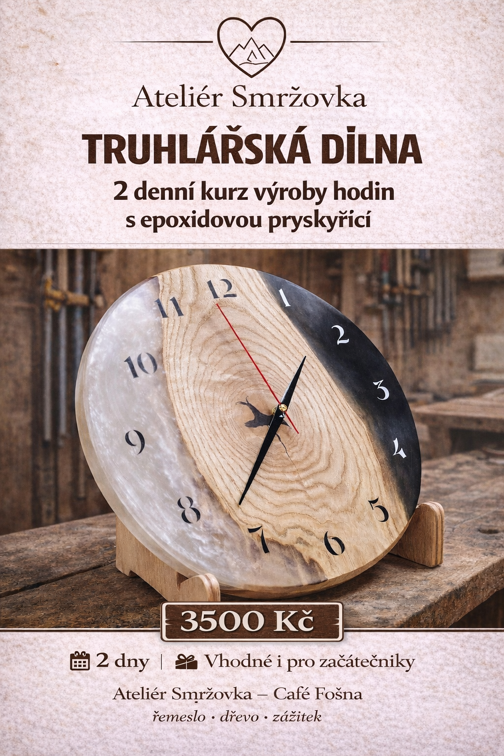 - Z kurzu si odnesete vlastnoručně vyrobené originální designové hodiny.