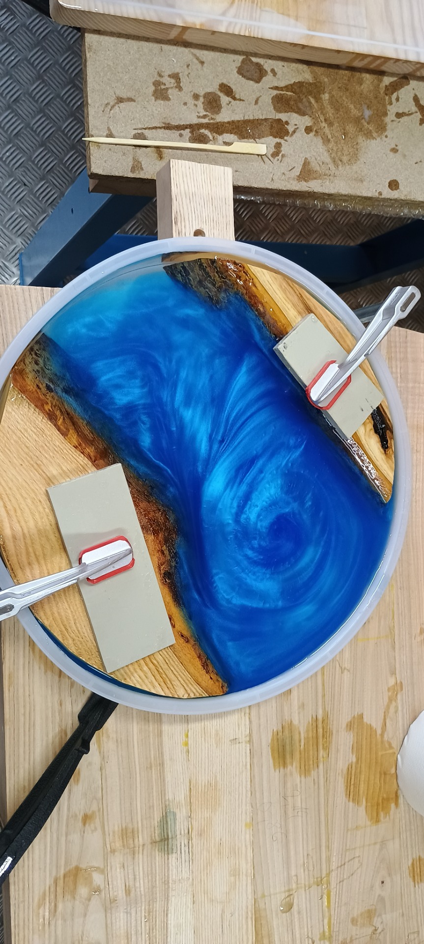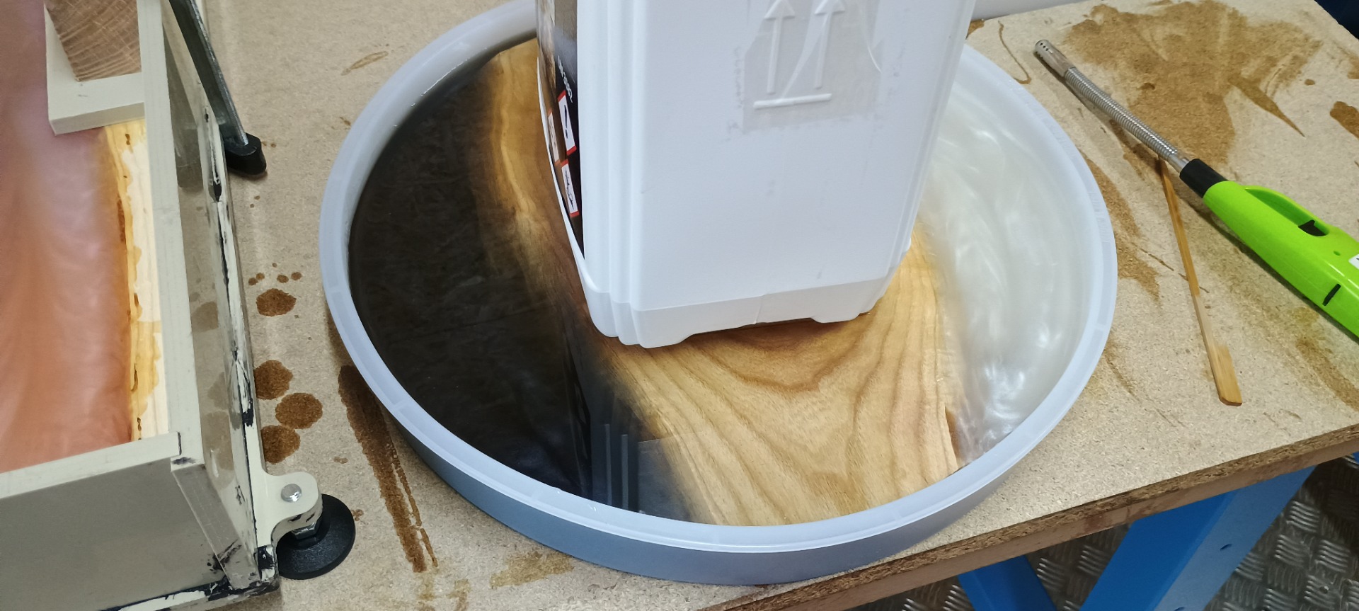 - Vyberete si odstín pigmentů do epoxidu, kterým hodiny pod naším dohledem zalijete.